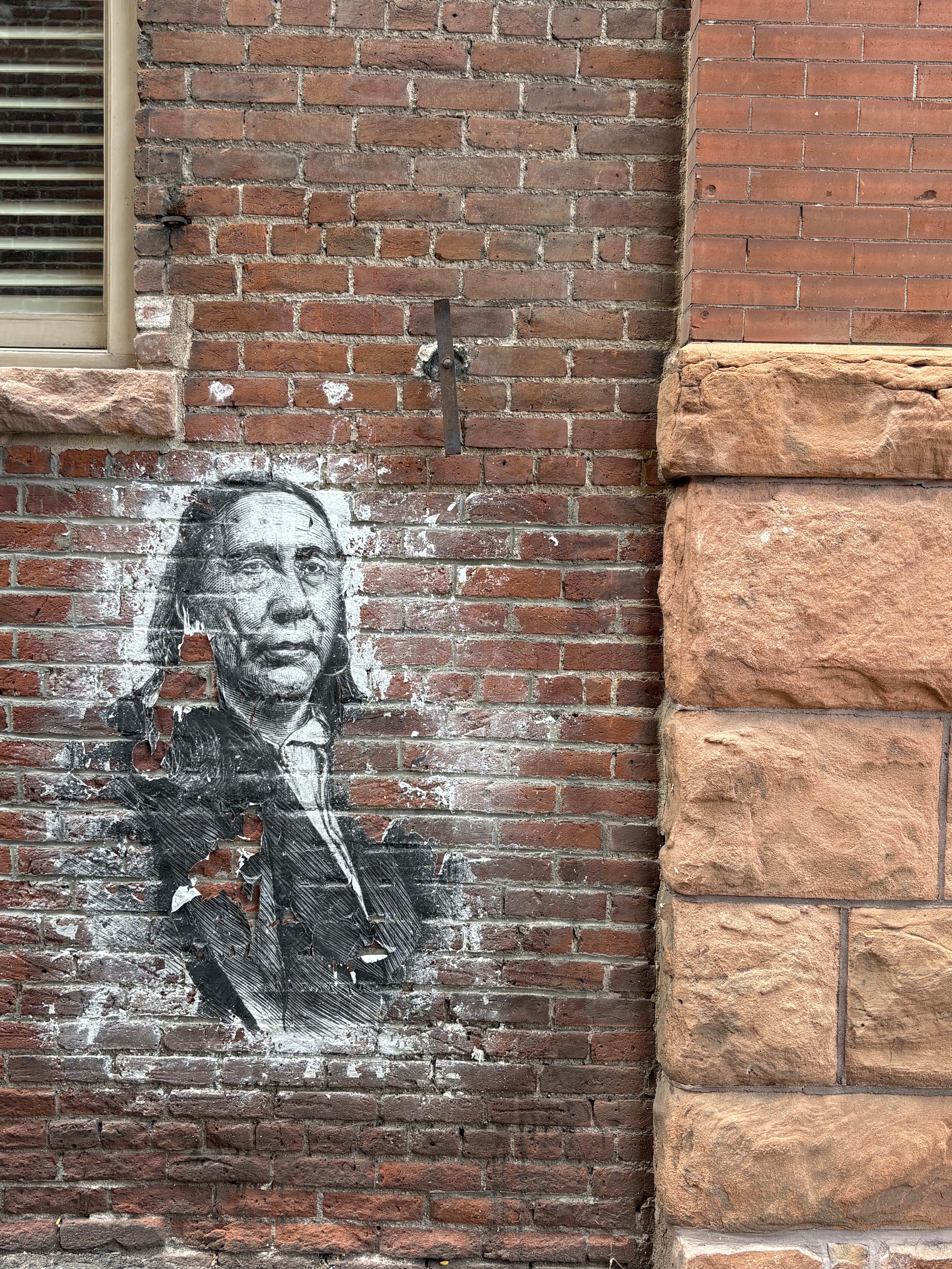As I left the museum with all of this swirling in my mind, I spotted a fading image on a brick wall in an alleyway. Later, I looked up this image online. It was Chief Little Raven, an Arapaho tribal leader who had survived the Sand Creek Massacre and, despite the barbarity and greed of the white men who had killed his people, devoted his life to negotiating peace.