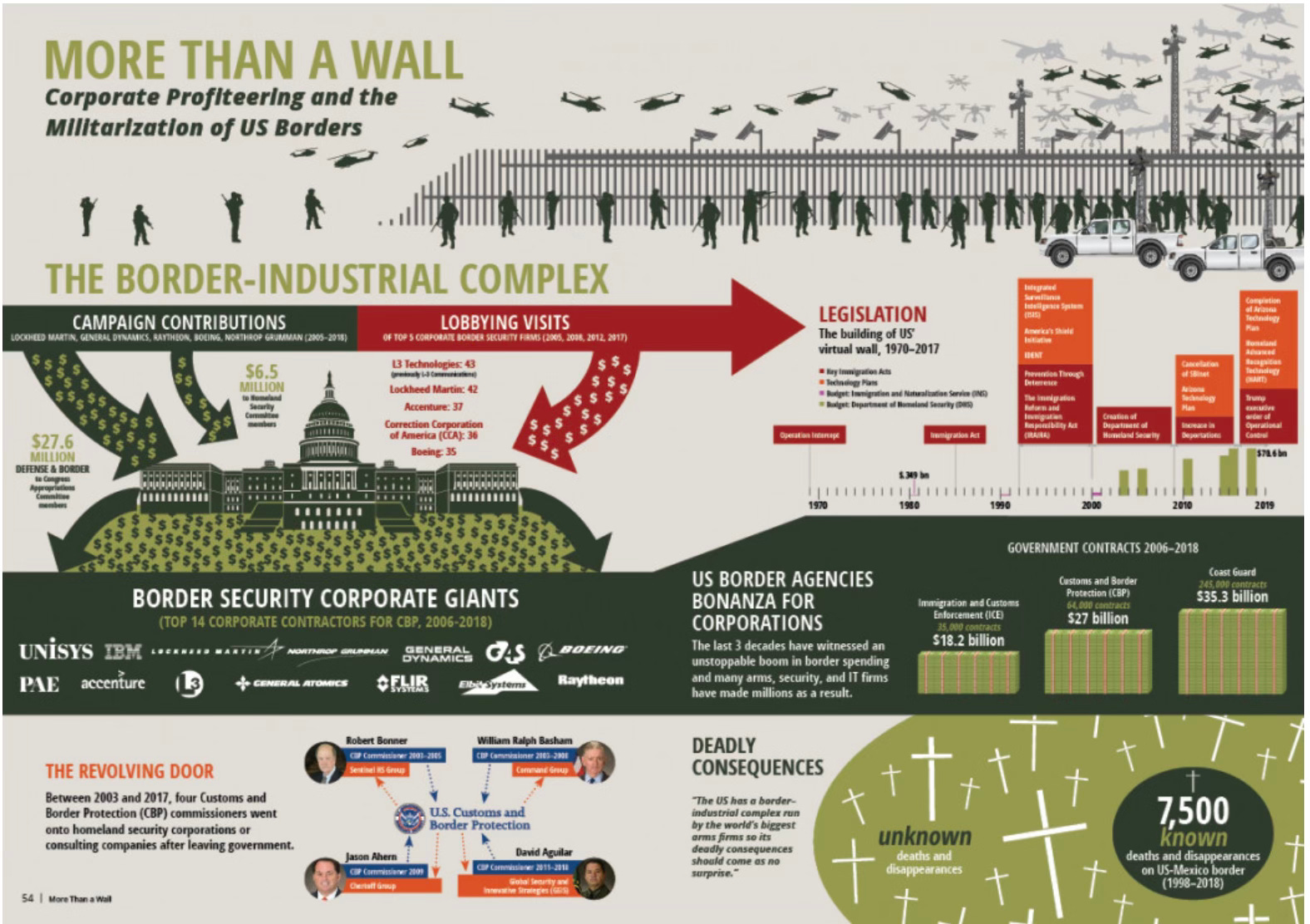 Carla Provost, chair of the Border Security Expo and former Border Patrol chief, described the expo as “a great opportunity for government and industry to come together to find solutions for border security challenges.” But without press, serious questions went unanswered: How might the profit motive influence how border and immigration enforcement work? How much clout and influence do companies have in Washington when it comes to strategy and policy? How are the “solutions” brought to the table to begin with, and under what criteria? Are border communities and civil society consulted?