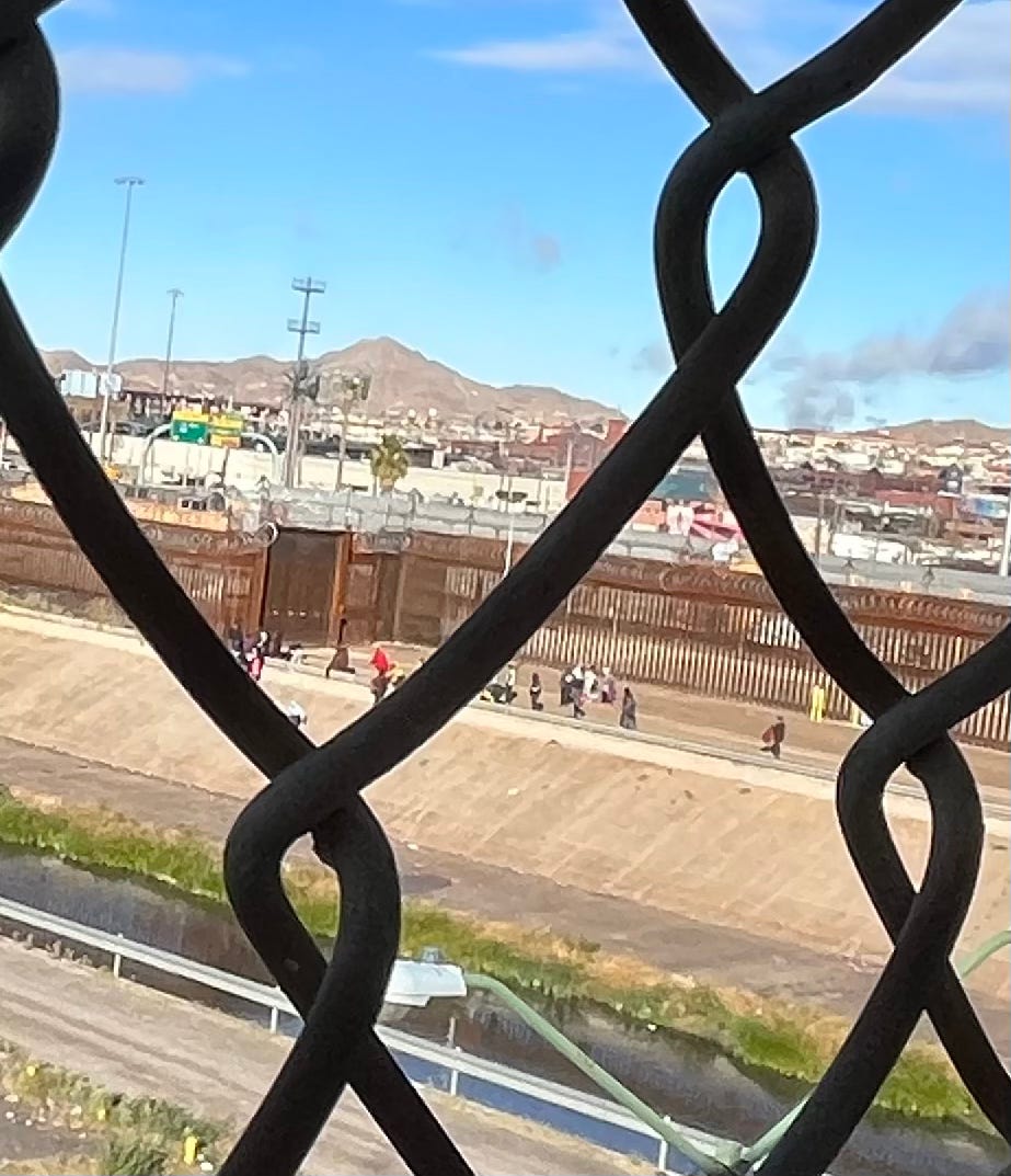 As I stand on the bridge in Juárez, where everything seems basically the same, I know a lot has happened over the last year, and we have covered much of it at The Border Chronicle. I, for one, have been following that contaminated river and have gone into Chihuahua to report on border water struggles for a forthcoming book, and I have shared some photo essays here. Melissa also wrote about Chihuahua earlier this year for The New Yorker, focusing on the epidemic of journalists assassinated in Mexico, which she summarized in The Border Chronicle. I feel so fortunate to work alongside Melissa, who not only wrote (and talked to experts) about the innards of this massive border fortification, whether it be the surge of wall building, deadly vehicle chases, Operation Lone Star, or Florida cops patrolling the border—and the right-wing rhetoric that so often propels it (not to mention the Elon Musk circus)—but also about people in border communities for inspiration and solutions such as border artists, a brilliant sidewalk school, or a doctor who spends his time treating border crossers (Doctor Brian Elmore also penned an op-ed for us). And that’s just a taste. This year, I had the opportunity to go to Yale and debate border enforcement, a humbling and educational experience, to say the least. As I wrote about my losing effort, some of the dynamics we constantly struggle with in this sort of border journalism were clearly revealed.