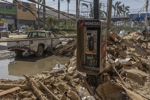 The first thing Cecilia Jaramillo Bailón told me was that there was no good cell signal in her community of San Isidro, near Acapulco. On October 24, she told me, they didn’t have the proper information about the approaching storm that would reportedly make landfall in the middle of the night, at about 3 a.m. The forecast was bleak, of course—a lot of wind, a lot of rain—but the early forecasts didn’t accurately predict what was about to happen. Passing over a stretch of abnormally warm water in the Pacific Ocean, the storm intensified rapidly, transforming into a hurricane, and then into a mega-hurricane, in 12 fast hours. As CNN reported, “Few in history have endured a storm as strong as Otis—Acapulco never has.” By the time it hit Acapulco and San Isidro, it was a wall of rain and wind blowing at 165 miles an hour, a category 5 hurricane. CNN called it a “slow-moving, 30-mile-wide, EF3 tornado.”