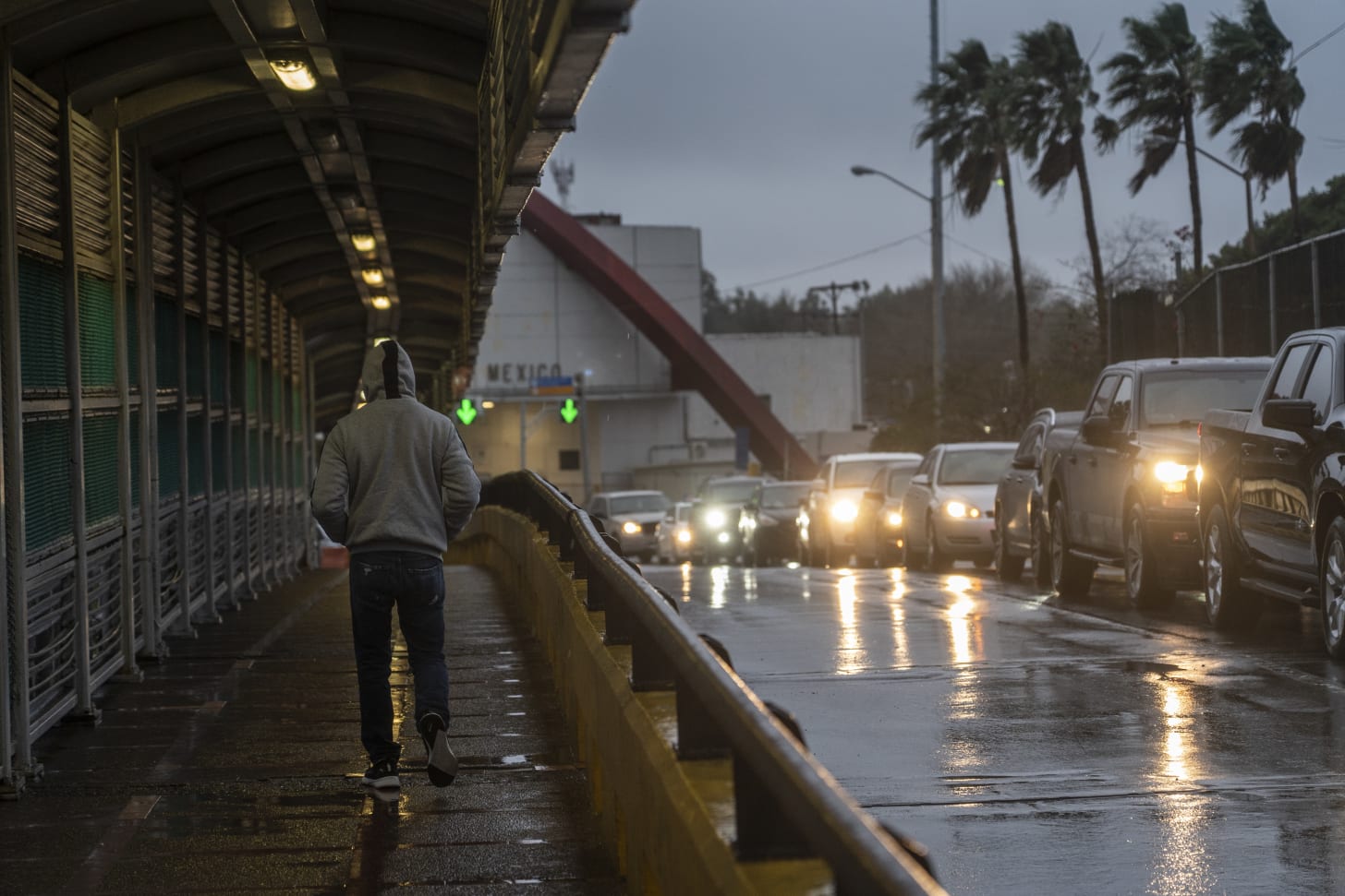 A person crosses the Gateway International Bridge from Brownsville, Texas, into Matamoros, Mexico on February 14, 2021. (Photo credit: Go Nakamura via Getty Images)