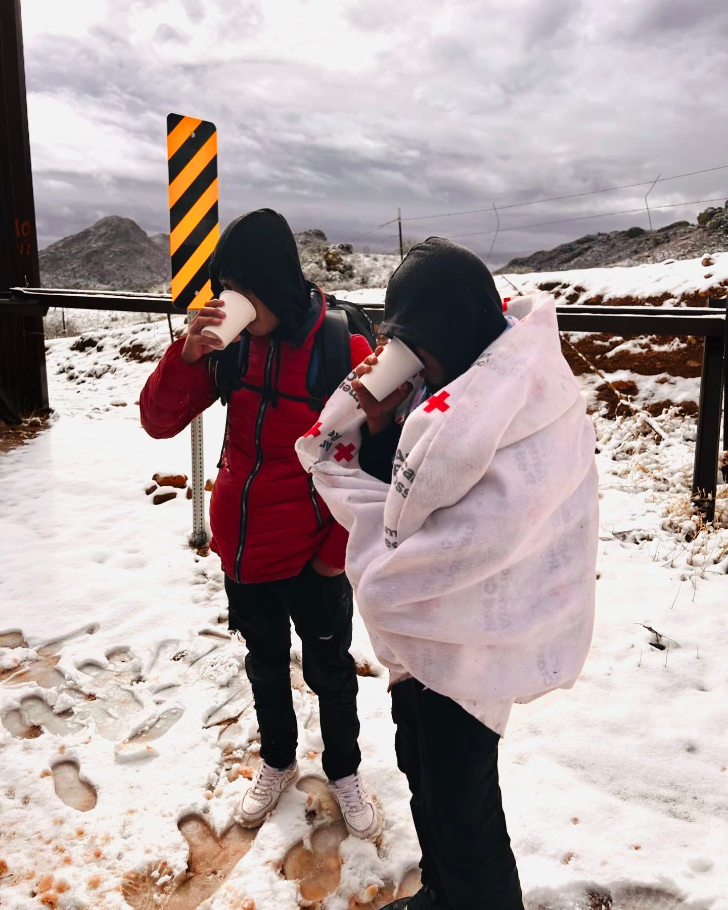 It was early Saturday when humanitarian aid volunteers arrived to the U.S.-Mexico border near the small border town of Sasabe, Arizona. The snow, sleet, wind, and rain had started overnight, and by the time people from the Green Valley Samaritans, the Tucson Samaritans, and No More Deaths (NMD) arrived, conditions were, in the words of an NMD press release, “life threatening.” It was 34 degrees. Not only was there snow, but the “mud was epic,” according to one volunteer. As a Samaritans vehicle rumbled down the border road, they encountered people who were wet, shivering, and cold—one man in only a T-shirt and a soaking sweatshirt jacket.