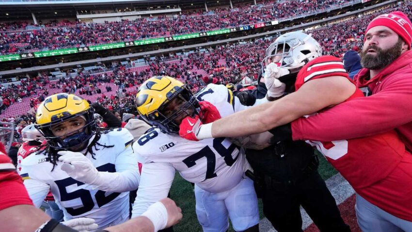 Yard Barker – Watch: Michigan-Ohio State brawl after Wolverines upset win Posted on November 30, 2024 A massive brawl broke out when Michigan tried to plant its flag at midfield. Read: Read More